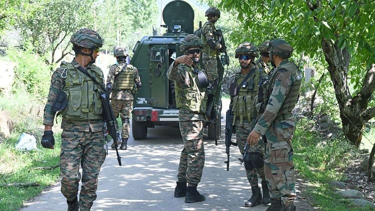 ऑपरेशन महादेव के दौरान श्रीनगर के बाहरी इलाके में मुठभेड़ स्थल के पास तैनात सुरक्षाबल।