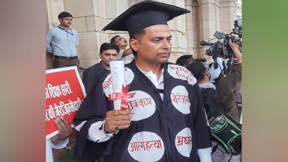 सपा विधायक सचिन यादव एक खास तरह की ड्रेस पहनकर विधानसभा पहुंचे। जो चर्चा का विषय बना रही। उनके काले रंग के कुर्ते में बेरोजगारी, भ्रष्टाचार, आत्महत्या जैसे शब्द लिखे थे। वह डिग्री लिखा एक कागज अपने हाथ में फोल्ड करके ले रखा था। उनकी ड्रेस वैसी ही थी, जब कोई छात्र अपनी डिग्री लेने विवि जाते समय पहनता है। इस तरह की ड्रेस पहनकर उन्होंने अनोखे अंदाज में सरकार के प्रति अपना विरोध जताया।