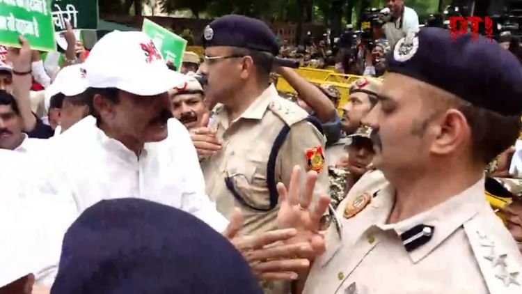 पुलिस द्वारा विरोध मार्च रोके जाने पर हंगामा हो गया है और विपक्षी सांसदों ने नारेबाजी शुरू कर दी है। पुलिस ने बैरिकेडिंग कर मार्च रोका है और कई विपक्षी सांसद बैरिकेडिंग पर चढ़कर नारेबाजी कर रहे हैं।