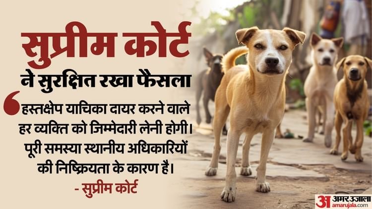 सुप्रीम कोर्ट ने सड़कों से आवारा कुत्तों को पकड़ने के 11 अगस्त के आदेश पर रोक लगाने की मांग वाली याचिका पर अपना फैसला सुरक्षित रख लिया। इस दौरान कोर्ट ने कहा कि हस्तक्षेप याचिका दायर करने वाले हर व्यक्ति को जिम्मेदारी लेनी होगी। शीर्ष अदालत ने यह भी कहा कि पूरी समस्या स्थानीय अधिकारियों की लापरवाही और निष्क्रियता के कारण है। नियमों का पालन न करने की वजह से समस्या इतनी बढ़ गई है।