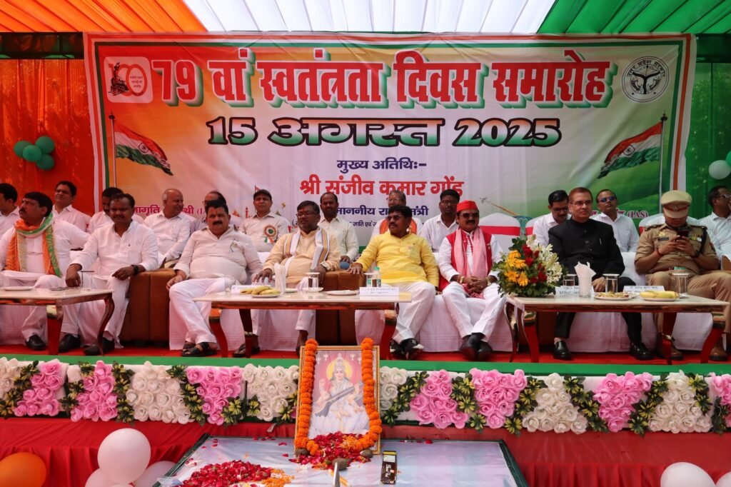 विशिष्ट स्टेडियम तियरा में आयोजित मुख्य जनपदीय सांस्कृतिक कार्यक्रम में प्रदेश सरकार के राज्य मंत्री संजीव कुमार गोंड़ ने ध्वजारोहण किया और वृक्षारोपण कर पर्यावरण संरक्षण का संदेश दिया। कार्यक्रम में विद्यालयों के छात्र-छात्राओं ने देशभक्ति गीतों और नृत्यों की सुंदर प्रस्तुतियां दीं, जिनकी उपस्थित जनसमूह ने सराहना की। इस अवसर पर नागरिक सुरक्षा कर्मियों, गोताखोरों, प्रगतिशील किसानों, शिक्षकों, ग्राम प्रधानों, सफाई कर्मियों और विभिन्न योजनाओं के लाभार्थियों को प्रशस्ति पत्र और प्रोत्साहन राशि देकर सम्मानित किया गया।
