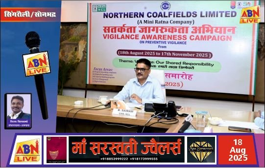 सोनभद्र/एबीएन न्यूज। भारत सरकार की मिनीरत्न कंपनी नॉर्दर्न कोलफील्ड्स लिमिटेड (एनसीएल) ने केंद्रीय सतर्कता आयोग के दिशानिर्देशन में आगामी सतर्कता जागरूकता सप्ताह 2025 के उपलक्ष्य में “निवारक सतर्कता” हेतु त्रैमासिक सतर्कता अभियान का शुभारंभ किया। यह अभियान 18 अगस्त, 2025 से 17 नवंबर, 2025 तक आयोजित किया जाएगा।