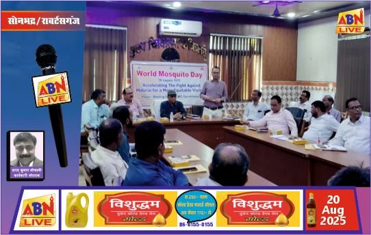सोनभद्र/एबीएन न्यूज। मुख्य चिकित्सा अधिकारी डाॅ. अश्वनी कुमार की अध्यक्षता में मुख्य चिकित्सा अधिकारी सभागार में विश्व मलेरिया दिवस विषयक गोष्ठी का आयोजन किया गया। बैठक में जनपद में मलेरिया की वर्षवार स्थिति की समीक्षा की गई और रोकथाम हेतु आवश्यक दिशा-निर्देश दिए गए।
