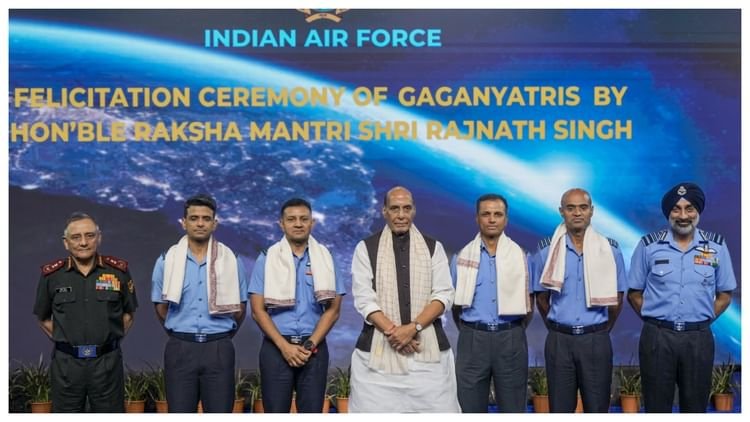 राजनाथ सिंह ने कहा कि ‘प्रशिक्षण के दौरान आप सभी ने जो मेहनत की, वह न केवल प्रभावशाली थी, बल्कि मैं कहूंगा कि उत्कृष्ट थी। मुझे भारत माता के सपूत, ग्रुप कैप्टन शुभांशु शुक्ला और उनके अन्य सहयोगियों, ग्रुप कैप्टन पी वी नायर, ग्रुप कैप्टन अजीत कृष्णन और ग्रुप कैप्टन अंगद प्रताप का स्वागत और अभिनंदन करते हुए सचमुच गर्व महसूस हो रहा है। सभी देशवासियों को आप सभी पर गर्व है। आप सभी ने देशवासियों को गौरवान्वित किया है।’