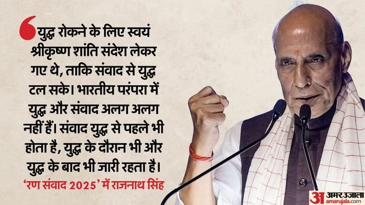 राजनाथ सिंह ने कहा कि ‘रण संवाद’ नाम ही गहन विचार का विषय है। ‘रण’ युद्ध का प्रतीक है जबकि ‘संवाद’ चर्चा और मेल मिलाप का। पहली नजर में दोनों विरोधाभासी लगते हैं, लेकिन भारतीय संस्कृति में ये दोनों साथ साथ चलते हैं। उन्होंने महाभारत का उदाहरण देते हुए कहा कि युद्ध रोकने के लिए स्वयं श्रीकृष्ण शांति संदेश लेकर गए थे, ताकि संवाद से युद्ध टल सके। रक्षा मंत्री ने कहा कि भारतीय परंपरा में युद्ध और संवाद अलग अलग नहीं हैं। संवाद युद्ध से पहले भी होता है, युद्ध के दौरान भी और युद्ध के बाद भी जारी रहता है। यही ‘रण संवाद’ का सबसे प्रासंगिक संदेश है, जो आज के समय में भी उतना ही महत्वपूर्ण है।