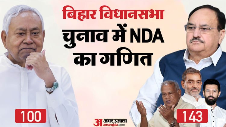 एनडीए के अंदर इस बार सीटों का बंटवारा इस तरह से हो रहा है कि जनता दल यूनाईटेड एक तरफ है और दूसरी तरफ भाजपा व बाकी दल। एनडीए में बिहार विधानसभा की 243 में से 100 सीटें जदयू को मिल रही हैं। जदयू इसे बढ़ाने की कोशिश में है, लेकिन भाजपा उसे इतने पर राजी कराने की कोशिश में है। भाजपा के कोटे में लोक जनशक्ति पार्टी (रामविलास), हिन्दुस्तानी आवाम मोर्चा (सेक्युलर) और राष्ट्रीय लोक मोर्चा है। भाजपा को 143 सीटों में से अपने पास 100+ रखकर बाकी को बांटना है। मुख्यमंत्री नीतीश कुमार अपने ताजा दिल्ली दौरे में इसपर बात करने के लिहाज से भी तैयारी कर गए थे। सीट बंटवारे में जदयू के कार्यकारी राष्ट्रीय अध्यक्ष संजय झा की अहम भूमिका है। जदयू अभी अपनी सीटें भी घोषित नहीं कर रहा है, क्योंकि एनडीए की एकता दिखाने के लिए भाजपा पहले अपने कोटे के सभी दलों को समझा कर तैयार कर लेगी, फिर यह होगा।