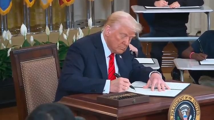 कार्यकारी आदेश पर हस्ताक्षर करते अमेरिकी राष्ट्रपति ट्रंप (फाइल)