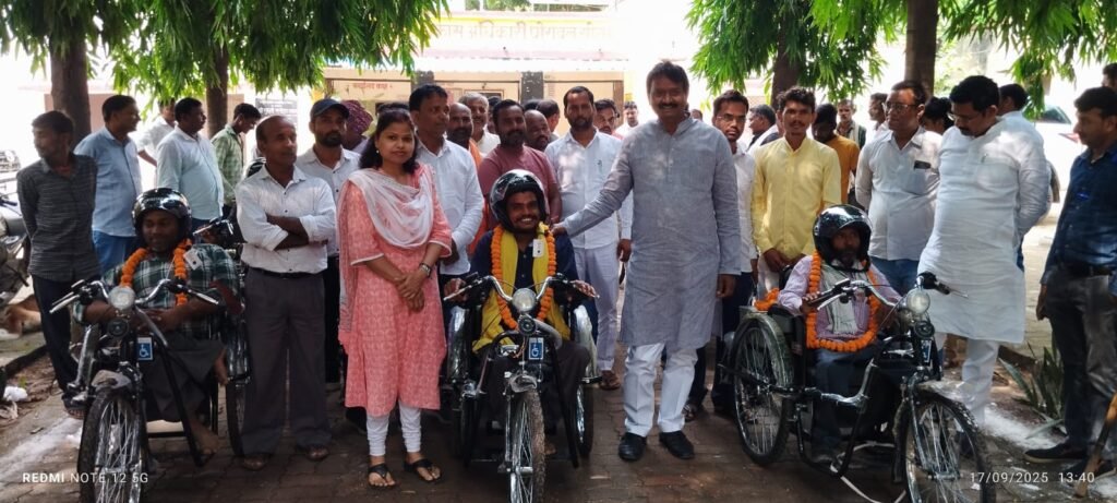सोनभद्र/एबीएन न्यूज। प्रधानमंत्री श्री नरेन्द्र मोदी जी के जन्म दिवस के शुभ अवसर पर विकास खण्ड परिसर घोरावल में एक विशेष कार्यक्रम आयोजित किया गया। इस अवसर पर माननीय विधायक घोरावल श्री अनिल कुमार मौर्य ने अपने कर-कमलों से दिव्यांगजनों को 10 मोटराइज्ड ट्राईसाइकिल एवं 03 जोड़ी बैसाखी वितरित कर उन्हें आत्मनिर्भर जीवन की ओर प्रोत्साहित किया।