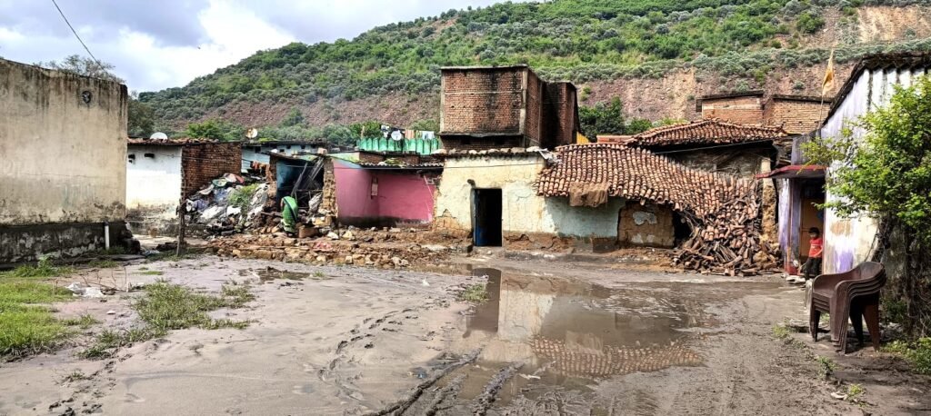 तेज बारिश से दो घर जमींदोज – तीन दर्जन घरों में घुसा मलबा, ग्रामीणों ने लगाई मदद की गुहार