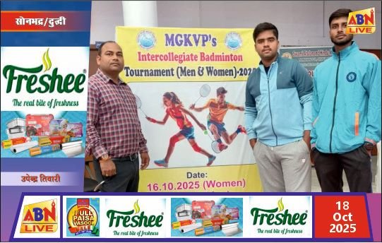 दुद्धी/सोनभद्र/एबीएन न्यूज। स्वामी अतुलानंद महाविद्यालय, शिवपुर (वाराणसी) द्वारा 17 अक्टूबर 2025 को आयोजित अन्तर्महाविद्यालय बैडमिंटन प्रतियोगिता (पुरुष वर्ग) में भाऊराव देवरस राजकीय महाविद्यालय, दुद्धी की टीम ने शानदार प्रदर्शन किया।