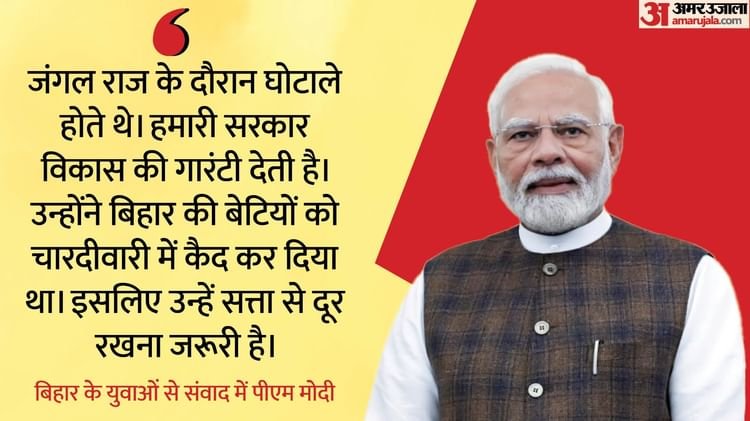 कार्यक्रम में युवाओं से संवाद के दौरान प्रधानमंत्री मोदी ने कहा, “…ये सारी ताकत एक वोट की ताकत है। उस वोट ने ही ये स्थिति पैदा की है कि आज राम मंदिर बन गया है। ऑपरेशन सिंदूर भी चलाया गया है और देश नक्सलवाद से मुक्ति की तरफ तेजी से आगे बढ़ रहा है। तो ये है वोट की ताकत… जंगलराज हटाने के बाद आज बिहार की जनता किसी भी हालत में जंगलराज को वापस नहीं आने देना चाहती, तो ये है बिहार के जागरूक नागरिकों की ताकत।”