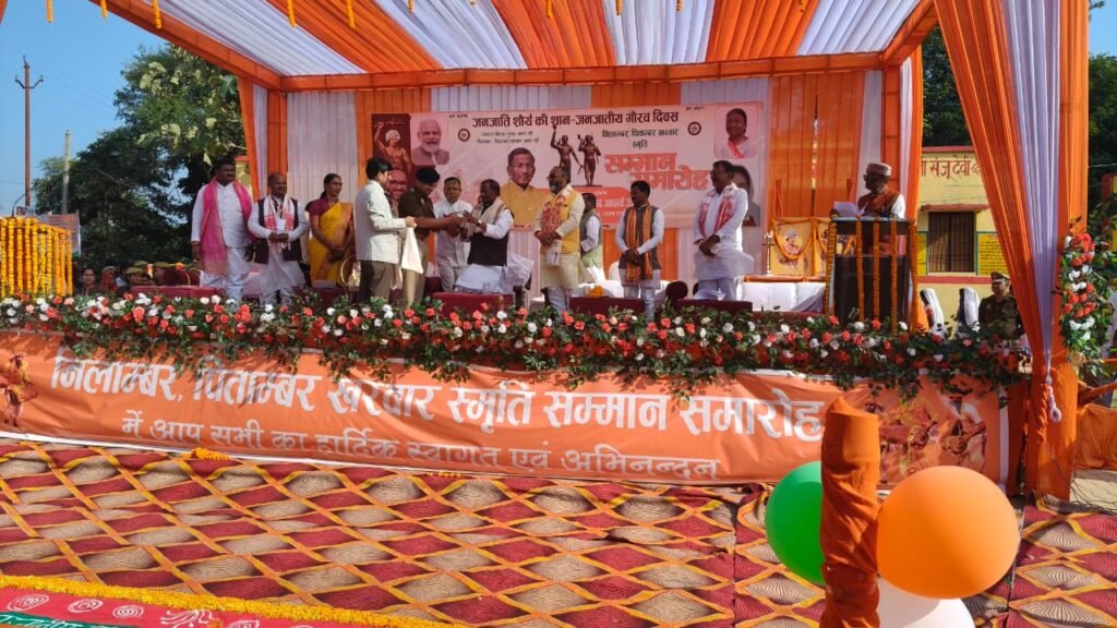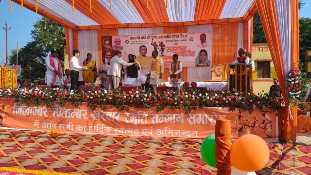 दुद्धी/सोनभद्र/एबीएन न्यूज। जनजातीय गौरव दिवस के अवसर पर बुधवार को शिव मंदिर पटना (सिल्थम) में आयोजित नीलांबर-पीतांबर खरवार स्मृति सम्मान समारोह का शुभारंभ महामहिम राज्यपाल, असम श्री लक्ष्मण प्रसाद आचार्य ने दीप प्रज्ज्वलित कर किया। कार्यक्रम का आगाज “बिरसा मुंडा अमर रहे, नीलांबर-पीतांबर अमर रहे” के जयघोष के साथ हुआ।