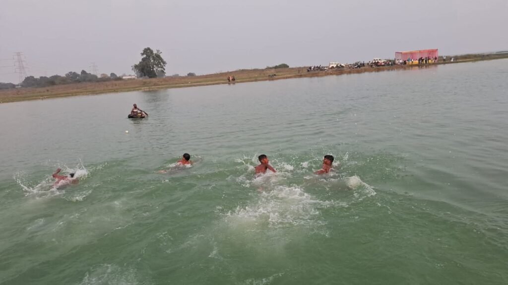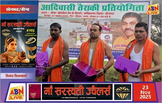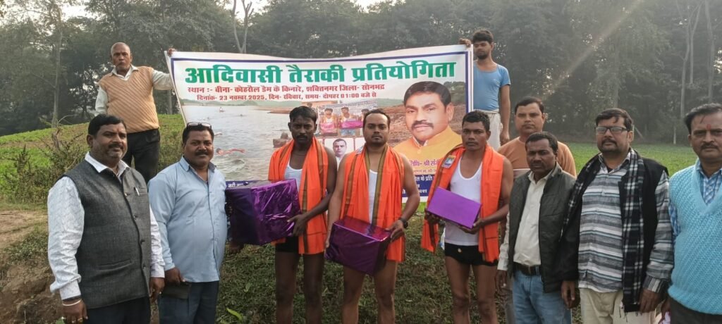 सोनभद्र/शक्तिनगर/एबीएन न्यूज़। कौहरौल शिव मंदिर स्थित रिहंद जलाशय में सोन आदिवासी शिल्पकला ग्रामोद्योग समिति द्वारा आदिवासी तैराकी प्रतियोगिता का भव्य आयोजन किया गया। तैराकी को सिर्फ एक खेल नहीं, बल्कि आत्मरक्षा का महत्वपूर्ण साधन बताते हुए समिति ने ग्रामीणों को इसके प्रति जागरूक करने का संदेश दिया।