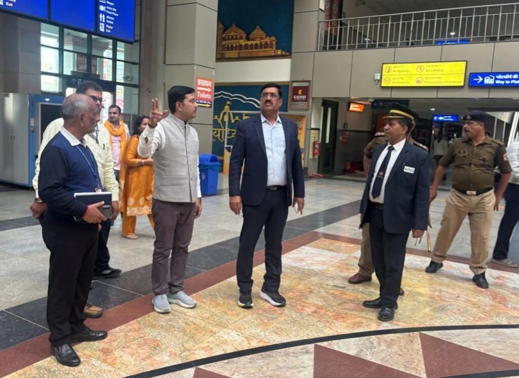 अयोध्या धाम स्टेशन पर पीसीसीएम ने टिकटिंग व्यवस्था, प्रतीक्षालय, होल्डिंग एरिया, सर्कुलेटिंग एरिया, कैटरिंग स्टॉल, पेयजल व्यवस्था, सहायता केंद्र, संकेतक बोर्ड और यात्री सुविधाओं की गुणवत्ता की जांच की। आवश्यक स्थानों पर सुधारात्मक कार्य तुरंत सुनिश्चित करने के निर्देश अधिकारियों को दिए गए।