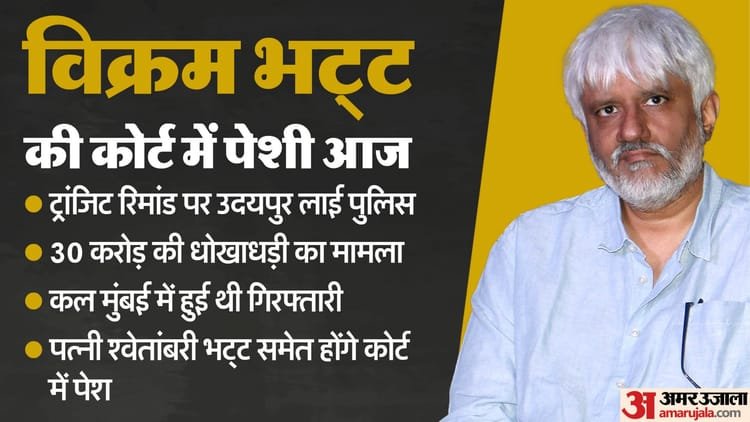 फिल्म डायरेक्टर विक्रम भट्ट और उनकी पत्नी श्वेताम्बरी भट्ट को उदयपुर पुलिस मुंबई से गिरफ्तार करके उदयपुर ले आई है। भट्ट पर 30 करोड़ रुपये की धोखाधड़ी करने का आरोप है, जिस पर उन्हें गिरफ्तार कर उदयपुर लाया गया है। पुलिस ने दोनों का आज दोपहर तक का ट्रांजिट रिमांड लिया है और आज उनकी उदयपुर कोर्ट में पेश होगी।