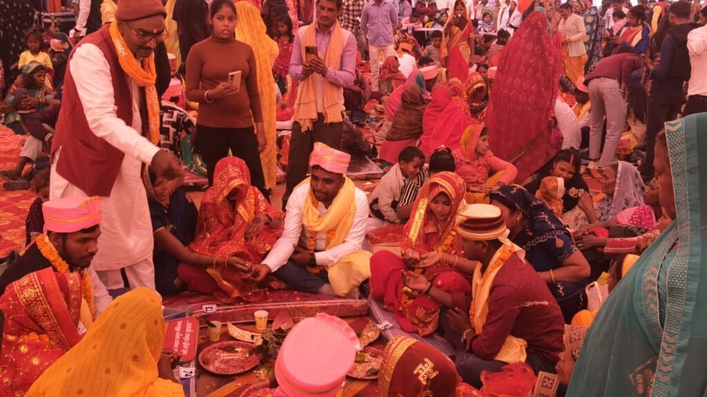 सोनभद्र/एबीएन न्यूज़। मुख्यमंत्री सामूहिक विवाह योजना के तहत गुरुवार को रेलवे फुटबॉल मैदान, चोपन में 171 जोड़ों का विवाह समारोह धूमधाम और धार्मिक परंपराओं के साथ सम्पन्न हुआ। प्रदेश सरकार की योजनाओं को आमजन तक पहुंचाने के उद्देश्य से आयोजित यह भव्य सामूहिक विवाह समारोह जिला प्रशासन की देखरेख में संपन्न हुआ। जिले के वरिष्ठ जनप्रतिनिधियों और अधिकारियों की मौजूदगी में हुए इस आयोजन ने पूरे क्षेत्र में उत्सव जैसा माहौल बना दिया।