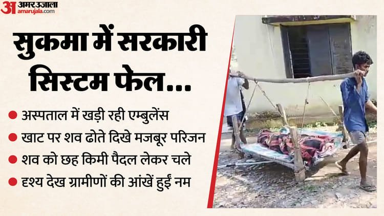 सुकमा जिले से मानवता को झकझोर देने वाली तस्वीर सामने आई है। एक ग्रामीण की मौत के बाद सरकारी अस्पताल से उसके शव को घर ले जाने के लिए एम्बुलेंस तक नसीब नहीं हुई। मजबूरन परिजनों ने शव को खाट पर रखा और करीब छह किलोमीटर पैदल चलकर घर पहुंचे। इस दृश्य को जिसने भी देखा, उसकी आंखें नम हो गईं और सरकारी व्यवस्था पर गुस्सा फूट पड़ा।