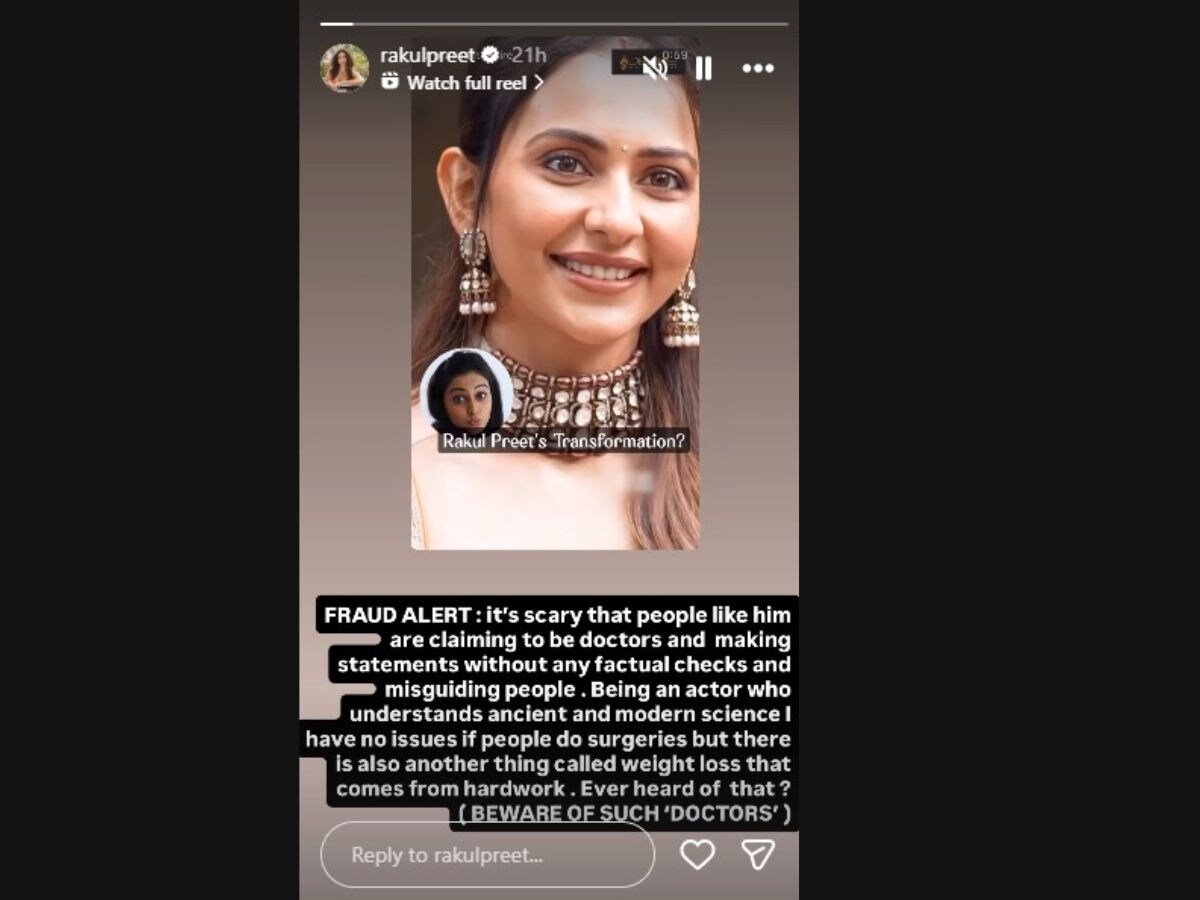 उन्होंने ये भी कहा था कि रकुल प्रीत सिंह अपने बदलाव के बारे में लोगों को नहीं बतातीं और फिटनेस की बातें करती हैं. एक्ट्रेस ने इस वीडियो को अपनी इंस्टाग्राम स्टोरी पर शेयर करते हुए कहा कि ऐसी चीजें लोगों को गुमराह करती हैं.