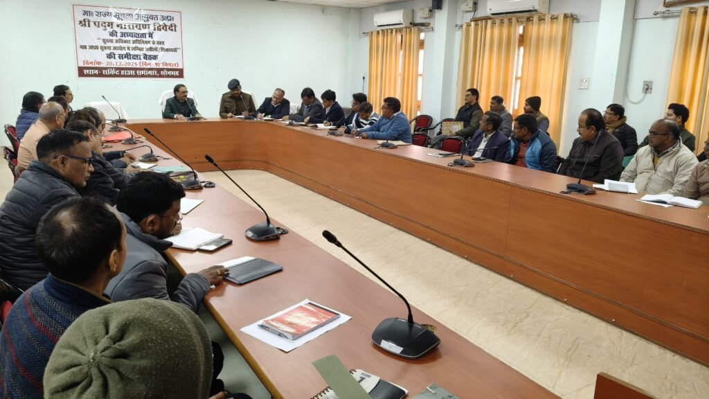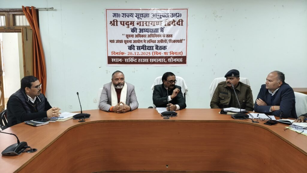 सोनभद्र/एबीएन न्यूज। राज्य सूचना आयुक्त उत्तर प्रदेश श्री पदुम नारायण द्विवेदी की अध्यक्षता में आज सर्किट हाउस चुर्क में सूचना अधिकार अधिनियम के अंतर्गत लंबित अपीलों एवं शिकायतों की समीक्षा बैठक आयोजित की गई। बैठक के दौरान उन्होंने जनपद स्तर पर सूचना आयोग में लंबित प्रकरणों की बारी-बारी से समीक्षा करते हुए जिला स्तरीय अधिकारियों को आवश्यक दिशा-निर्देश दिए।