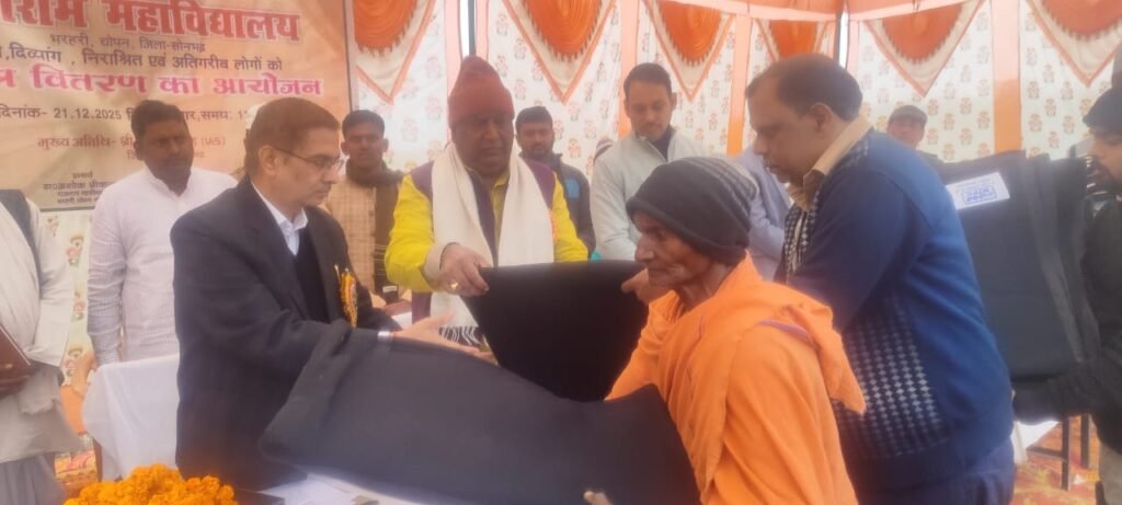 सोनभद्र/एबीएन न्यूज। जनपद सोनभद्र में शीतलहर और कड़ाके की ठंड को देखते हुए प्रशासन द्वारा जरूरतमंदों को राहत पहुंचाने का क्रम जारी है। इसी क्रम में जिलाधिकारी श्री बी.एन. सिंह ने चोपन ब्लॉक क्षेत्र के भरहरी गांव स्थित राजाराम महाविद्यालय परिसर में कंबल वितरण कार्यक्रम का शुभारंभ किया। कार्यक्रम की शुरुआत उन्होंने दीप प्रज्वलन एवं मां सरस्वती के चित्र पर माल्यार्पण कर की।