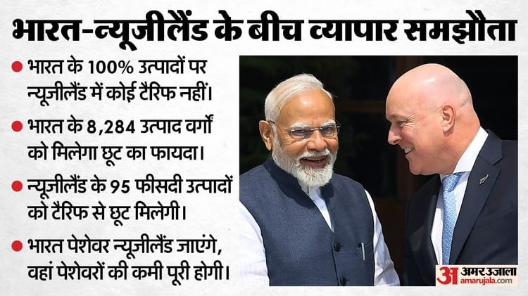 भारत और न्यूजीलैंड के बीच मुक्त व्यापार समझौते (एफटीए) पर मुहर लग गई है। दोनों देशों ने 10 वर्षों से अटकी समझौते पर बातचीत को इस साल मार्च में फिर शुरू किया था। अब नौ महीने बाद दोनों देशों के व्यापार को लेकर खुशखबरी आई है।