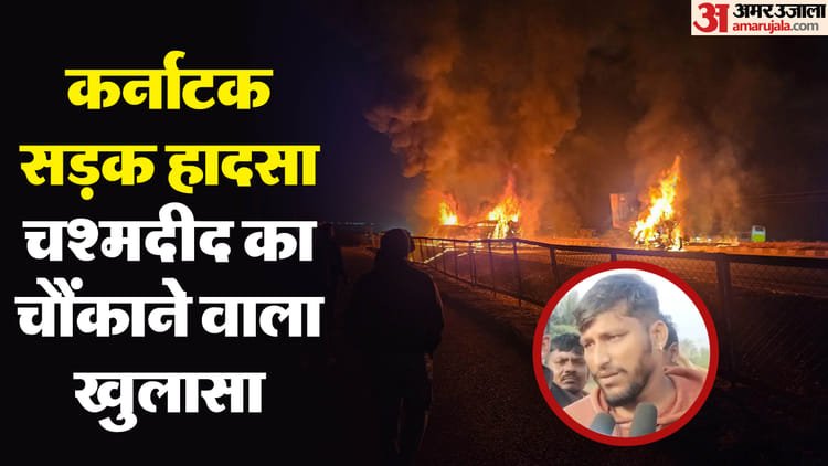 कर्नाटक के चित्रदुर्ग में हुए गुरुवार को हुए भीषण सड़क हादसे में नौ लोगों की मौत हो गई। इस सड़क हादसे में 21 लोग भी घायल हुए हैं। पुलिस ने बताया कि कंटेनर ट्रक डिवाइडर को पार करके सामने से आ रही एक बस से टकरा गया। इसकी वजह से बस में आग लग गई। अब इस मामले में हादसे के चश्मदीद ने बड़ा खुलासा किया है।