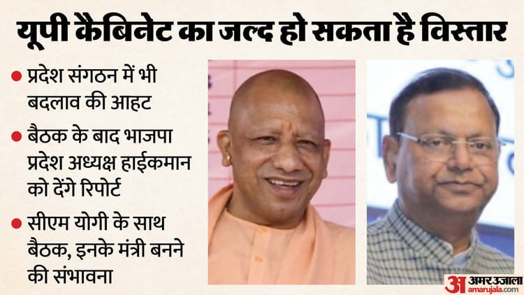 माना जा रहा है कि दिल्ली से हरी झंडी मिलते ही कभी भी विस्तार पर अमल किया जा सकता है। इसके बाद संगठन के पुर्नगठन का काम शुरू होगा।मुख्यमंत्री योगी आदित्यनाथ मंगलवार को पूरे दिन लखनऊ में थे और उनका पूरा समय आरक्षित था। देर शाम को उनके आवास पर प्रदेश अध्यक्ष पंकज चौधरी, महामंत्री संगठन धर्मपाल सिंह, दोनों डिप्टी सीएम केशव प्रसाद मौर्य और ब्रजेश पाठक के अलावा संघ से क्षेत्र प्रचारक अनिल कुमार व अन्य संघ के पदाधिकारी पहुंचे। सभी लोग करीब सीएम आवास पर सवा घंटे अधिक समय तक रहे।