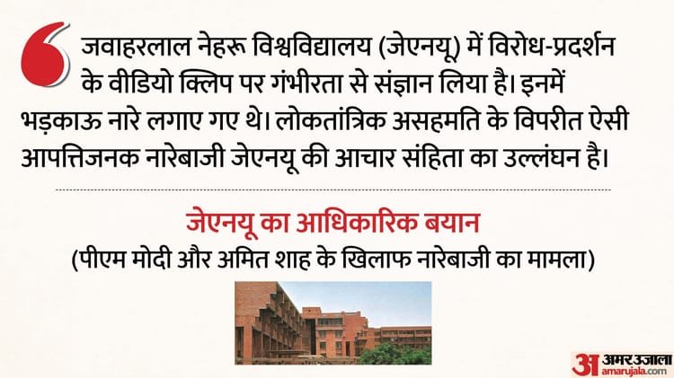 विश्वविद्यालय ने कहा कि हमने घटना पर गंभीर ध्यान दिया है और सुरक्षा शाखा को जांच में पुलिस का सहयोग करने के लिए कहा गया है। यह ध्यान दिया गया कि ऐसे नारे लगाना लोकतांत्रिक विरोध के पूरी तरह से असंगत है, जेएनयू आचार संहिता का उल्लंघन करता है।