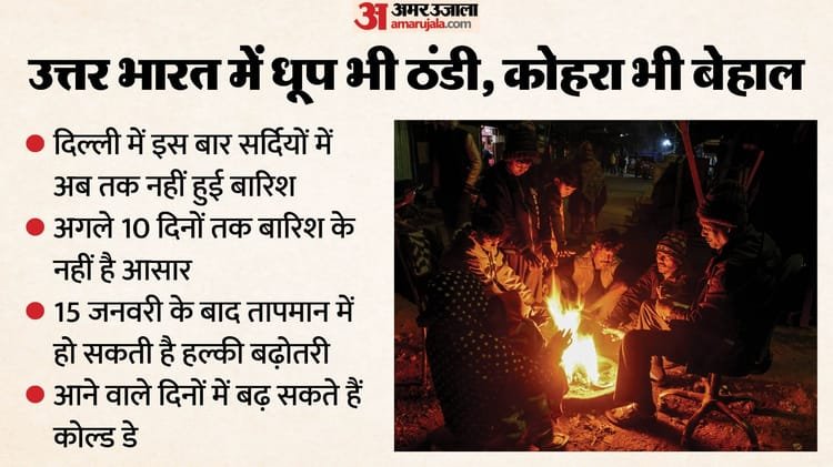 दिल्ली-एनसीआर में मौसम का यह अजीब मिजाज लोगों को उलझन में डाल रहा है। कभी घना कोहरा छा जाता है, तो कभी बिल्कुल साफ आसमान नजर आता है। दिन में धूप थोड़ी राहत देती है, लेकिन शाम ढलते ही ठंड तेजी से बढ़ जाती है। दिन में धूप खिलने के बावजूद ठंडी हवाएं लोगों को कंपकंपाने पर मजबूर कर रही है। मौसम विशेषज्ञों के मुताबिक, अगले दस दिनों तक यही हालात बने रहने की संभावना है। इस दौरान ठंडी हवाएं चलती रहेंगी, लेकिन तापमान में बड़ी गिरावट नहीं होगी। राजधानी में इस बार सूखी सर्दी का दौर चल रहा है। फिलहाल बारिश की कोई संभावना नहीं है। हालांकि 15 जनवरी के बाद तापमान में हल्की बढ़ोतरी जरूर देखने को मिल सकती है।