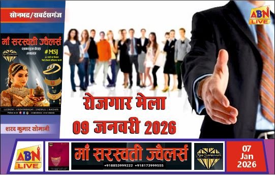 सोनभद्र/एबीएन न्यूज। जनपद के बेरोजगार युवाओं को रोजगार के अवसर उपलब्ध कराने के उद्देश्य से जिला सेवायोजन कार्यालय, सोनभद्र द्वारा 09 जनवरी 2026 को एक दिवसीय रोजगार मेला आयोजित किया जा रहा है। यह रोजगार मेला प्रातः 10:00 बजे से रघुवीर राम प्रा० आई० टी० आई०, पसहीं खुर्द, हिन्दुआरी के पास, वाराणसी रोड, बभनौली, रॉबर्ट्सगंज, सोनभद्र स्थित परिसर में आयोजित होगा।