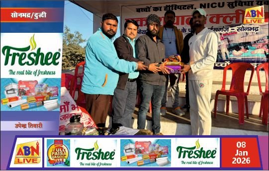 दुद्धी /सोनभद्र/एबीएन न्यूज। टाउन क्रिकेट क्लब दुद्धी के तत्वावधान में बुधवार 8 जनवरी 2026 को मऊ और भभुआ के बीच खेला गया क्रिकेट मुकाबला दर्शकों के लिए बेहद रोमांचक रहा। मैच का फैसला अंतिम ओवर तक चला और अंततः भभुआ की टीम ने मऊ को मात्र 3 रन से पराजित कर शानदार जीत दर्ज की।