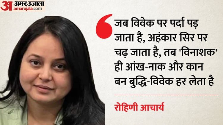 रोहिणी ने अपने सोशल मीडिया पोस्ट में लिखा, ‘बड़ी शिद्दत से बनायी और खड़ी की गयी ‘बड़ी विरासत’ को तहस-नहस करने के लिए परायों की जरूरत नहीं होती, ‘अपने’ और अपनों के चंद षड्यंत्रकारी ‘नए बने अपने’ ही काफी होते हैं। हैरानी तो तब होती है, जब ‘जिसकी’ वजह से पहचान होती है, जिसकी वजह से वजूद होता है, उस पहचान, उस वजूद के निशान को बहकावे में आ कर मिटाने और हटाने पर ‘अपने’ ही आमादा हो जाते हैं।” आगे उन्होंने लिखा, “जब विवेक पर पर्दा पड़ जाता है, अहंकार सिर पर चढ़ जाता है, तब ‘विनाशक’ ही आंख-नाक और कान बन बुद्धि-विवेक हर लेता है।”