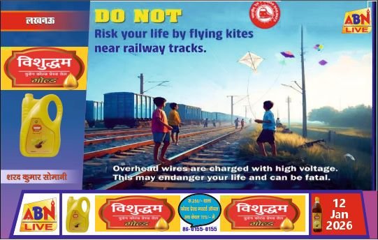 लखनऊ/एबीएन न्यूज। रेल प्रशासन ने आम नागरिकों, विशेषकर बच्चों एवं युवाओं से रेलवे की विद्युतीकृत लाइनों, ओवरहेड इक्विपमेंट (ओएचई) और रेलवे ट्रैक के आसपास पतंग न उड़ाने की सख्त अपील की है। प्रशासन ने चेतावनी दी है कि थोड़ी सी लापरवाही भी गंभीर दुर्घटना का कारण बन सकती है।