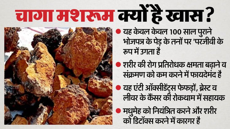 चागा मशरूम की अंतरराष्ट्रीय बाजार में काफी मांग है। दिल्ली सहित बड़े महानगरों में साइबेरिया व रूस से आयातित चागा मशरूम 25 से 30 हजार रुपये प्रति किलो तक बिक रहा है। विशेषज्ञों का कहना है कि यदि इसके संरक्षण और वैज्ञानिक दोहन की दिशा में कदम उठाए जाएं तो सीमांत क्षेत्रों के ग्रामीणों को इससे आर्थिक लाभ मिल सकता है।