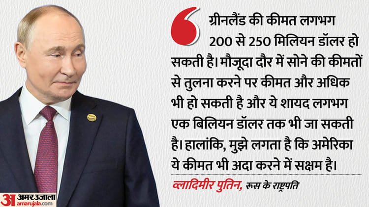 बुधवार को रूस की राष्ट्रीय सुरक्षा परिषद को वर्चुअली संबोधित करते हुए रूसी राष्ट्रपति पुतिन ने कहा, ग्रीनलैंड के अधिग्रहण की कीमत करीब 200-250 मिलियन डॉलर हो सकती है। सोने की कीमतों को देखते हुए ये आंकड़ा एक अरब डॉलर तक जा सकता है।