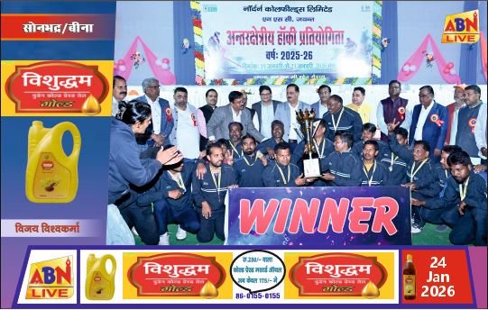 सोनभद्र/एबीएन न्यूज। भारत सरकार की मिनिरत्न कंपनी नॉर्दर्न कोलफील्ड्स लिमिटेड (एनसीएल) के एनएससी परिसर में आयोजित 5 दिवसीय अंतरक्षेत्रीय हॉकी प्रतियोगिता 2025-26 का शुक्रवार को भव्य समापन हुआ। यह प्रतियोगिता 19 जनवरी से 23 जनवरी 2026 तक लीग-कम-नॉकआउट आधार पर खेली गई।