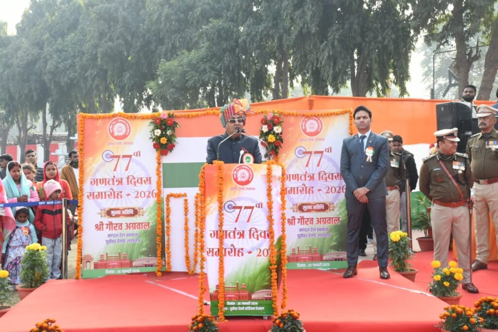 लखनऊ/एबीएन न्यूज। पूर्वोत्तर रेलवे लखनऊ मंडल में 77वां गणतंत्र दिवस पूरे हर्षोल्लास, गरिमा और देशभक्ति भाव के साथ मनाया गया। ऐशबाग स्थित रेलवे स्टेडियम में प्रातः 09.30 बजे मंडल रेल प्रबंधक श्री गौरव अग्रवाल द्वारा राष्ट्रीय ध्वज फहराया गया। इस अवसर पर उन्होंने मंडल के समस्त रेल अधिकारियों, कर्मचारियों एवं रेल उपभोक्ताओं को गणतंत्र दिवस की हार्दिक शुभकामनाएं दीं।