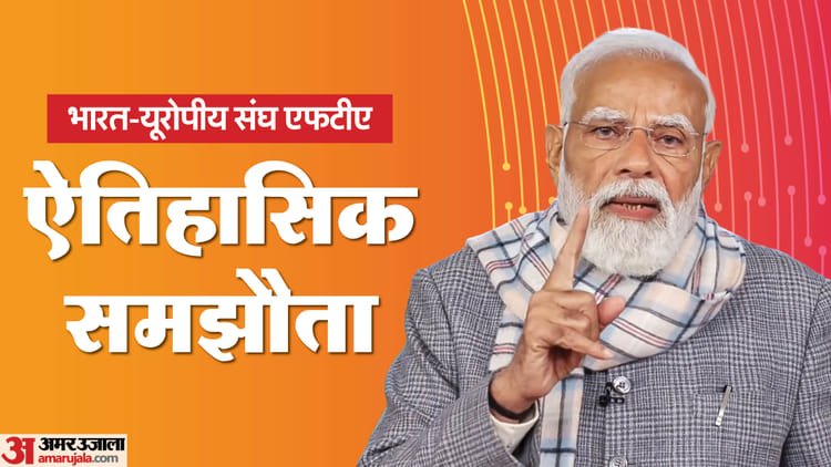 पीएम मोदी ने कहा कि भारत और यूरोपीय संघ के बीच बहुत बड़ा एग्रीमेंट हुआ है। दुनिया में लोग इसकी चर्चा मदर ऑफ ऑल डील के रूप में कर रहे हैं। ये समझौता भारत के 140 करोड़ लोगों और यूरोपीय देशों के करोड़ों लोगों के लिए बहुत बड़े अवसर लेकर आया है। ये दुनिया की दो बड़ी अर्थव्यवस्थाओं के बीच तालमेल का बड़ा उदाहरण बना है। ये समझौता वैश्विक जीडीपी के करीब 25 फीसदी को और ग्लोबल ट्रेड के एक तिहाई हिस्से का प्रतिनिधित्व करता है।