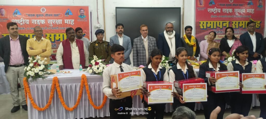 सोनभद्र/एबीएन न्यूज। जनपद में सड़क सुरक्षा के प्रति जन-जागरूकता बढ़ाने के उद्देश्य से 1 जनवरी से 31 जनवरी 2026 तक आयोजित सड़क सुरक्षा माह का समापन कार्यक्रम डायट परिसर में भव्य, अनुशासित एवं भक्ति भावपूर्ण वातावरण में संपन्न हुआ। कार्यक्रम की शुरुआत सड़क सुरक्षा से जुड़े प्रेरक संदेशों और सांस्कृतिक प्रस्तुतियों के साथ हुई, जिसमें छात्र-छात्राओं ने उत्साहपूर्वक सहभागिता निभाई।