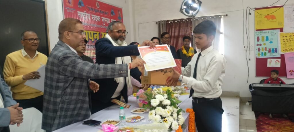 सड़क सुरक्षा माह के अंतर्गत आयोजित निबंध, चित्रकला, पोस्टर, भाषण सहित विभिन्न प्रतियोगिताओं में उत्कृष्ट प्रदर्शन करने वाले छात्र-छात्राओं को प्रशस्ति पत्र एवं पुरस्कार प्रदान कर सम्मानित किया गया। अतिथियों ने विद्यार्थियों की रचनात्मकता और जागरूकता की सराहना करते हुए कहा कि युवा पीढ़ी यदि सड़क सुरक्षा के नियमों को अपनाए और दूसरों को भी इसके लिए प्रेरित करे, तो दुर्घटनाओं में उल्लेखनीय कमी लाई जा सकती है।