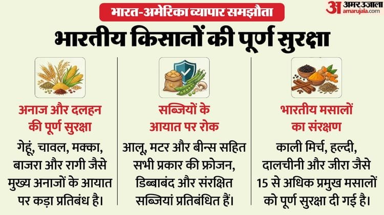 अमेरिका के साथ व्यापार समझौते की बातचीत में भारत के लिए कुछ सीमा रेखाएं निर्धारित की गई हैं। पीयूष गोयल ने कहा कि भारत में किसी भी प्रकार के आनुवंशिक रूप से संशोधित उत्पादों की अनुमति नहीं दी जाएगी। मक्का, चावल, गेहूं, बाजरा और रागी जैसी मुख्य खाद्य वस्तुओं पर कोई रियायत नहीं दी जाएगी। भारत में बहुतायत में उगाए जाने वाले फल, जिनमें केला और खट्टे फल शामिल हैं, संरक्षित रहेंगे। इस समझौते से मांस, मुर्गी, डेयरी उत्पाद, सोयाबीन, चीनी और अनाज प्रभावित नहीं होंगे।