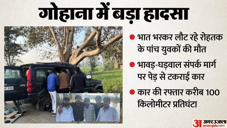 गोहाना में भीषण हादसा, भात भरकर लौट रहे रोहतक के 5 युवकों की मौत