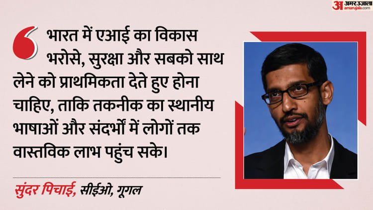 पिचाई ने भारत की विविधता, बहुभाषी पारिस्थितिकी और मजबूत डिजिटल पब्लिक इंफ्रास्ट्रक्चर को नवाचार के लिए मजबूत आधार बताते हुए कहा कि यह वैश्विक स्तर पर एआई के लोकतांत्रिक उपयोग का एक मॉडल बन सकता है। उन्होंने जोर दिया कि एआई का विकास भरोसे, सुरक्षा और समावेशिता को प्राथमिकता देते हुए होना चाहिए, ताकि तकनीक स्थानीय भाषाओं और संदर्भों में लोगों तक वास्तविक लाभ पहुंचा सके।