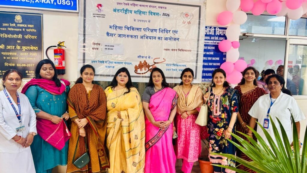 लखनऊ / एबीएन न्यूज। अंतरराष्ट्रीय महिला दिवस के अवसर पर उत्तर रेलवे, लखनऊ मंडल के मंडलीय चिकित्सालय (इंडोर हॉस्पिटल) में महिला कर्मचारियों के लिए एक विशेष चिकित्सा शिविर का आयोजन किया गया। यह स्वास्थ्य शिविर सोमवार 09 मार्च 2026 को आयोजित किया गया, जिसमें महिला कर्मचारियों और उनके परिजनों को स्वास्थ्य संबंधी महत्वपूर्ण जानकारी और चिकित्सकीय परामर्श प्रदान किया गया।