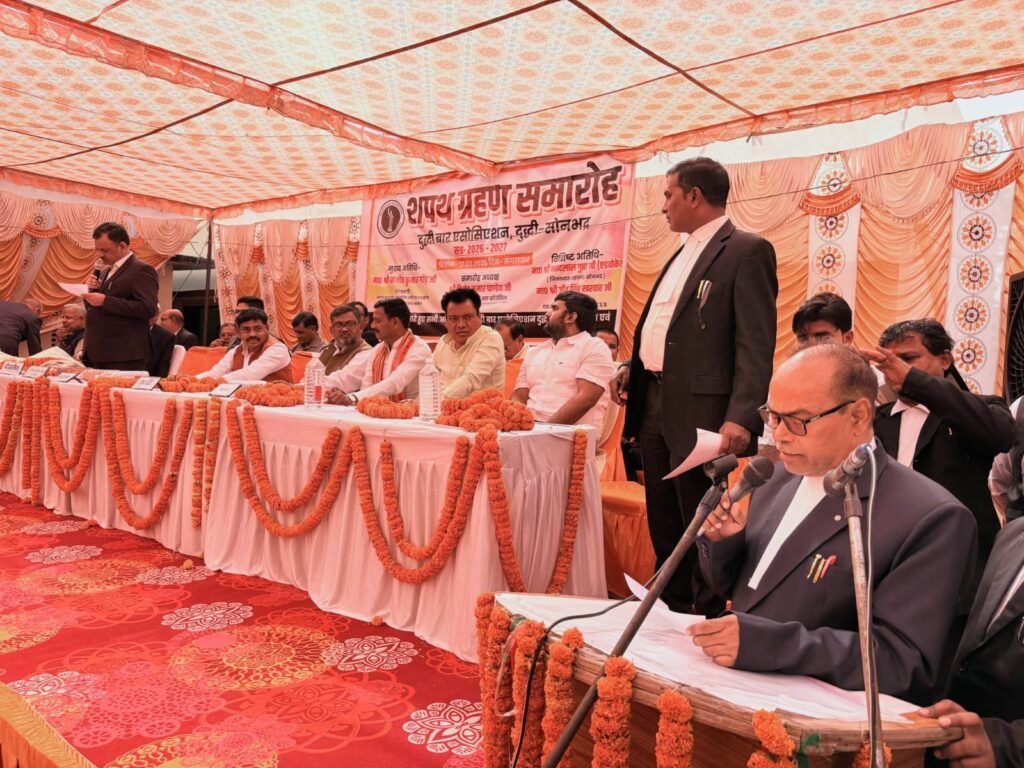 दुद्धी/सोनभद्र/एबीएन न्यूज। मंगलवार को Duddhi Bar Association की नवनिर्वाचित कार्यकारिणी का भव्य शपथ ग्रहण समारोह आयोजित किया गया, जिसमें पदाधिकारियों ने पद एवं गोपनीयता की शपथ ली। समारोह में मुख्य अतिथि के रूप में प्रदेश सरकार के राज्यमंत्री Sanjeev Kumar Gond उपस्थित रहे, जबकि कार्यक्रम की अध्यक्षता Bar Council of Uttar Pradesh के सदस्य विनोद कुमार पांडेय ने की।