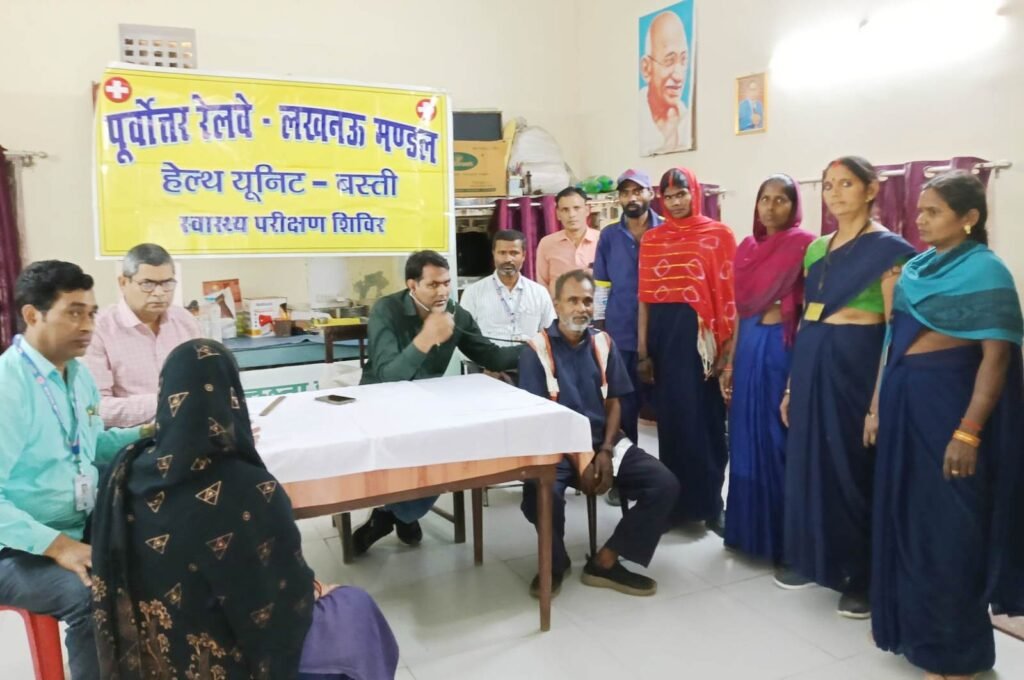 आयोजित शिविर में चिकित्सकों और स्वास्थ्य कर्मियों की टीम ने रेलवे कर्मचारियों और स्वच्छता कर्मियों का स्वास्थ्य परीक्षण किया। इस दौरान डॉ. मो. मुसक्किर (सीएमपी) और स्वास्थ्य कर्मियों द्वारा बस्ती स्टेशन स्थित मुख्य स्वास्थ्य निरीक्षक कार्यालय में कार्यरत 15 निविदा स्वच्छता कर्मियों और 4 रेलवे कर्मचारियों सहित कुल 19 कर्मियों का स्वास्थ्य परीक्षण किया गया।